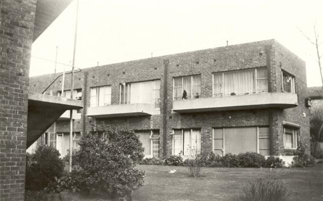 It was almost certainly the case that Overend hoped some of the fashionable style associated with the Orient would permeate the flats if he named them after a prominent Middle Eastern city. But also the apartments were a revelation in their day and represented a new way of thinking about space, style and economy. While Overend made the private spaces smaller – each studio flat is 24m2 – he magnified the shared spaces, both functional and social, through the gardens, the communal dining area, the laundries and even the roof. There were flourishes in the use of finishes, including importing the design of curved aluminium door handles from London. The seemingly unsupported stairs were exotic, even unique, at the time of their design.