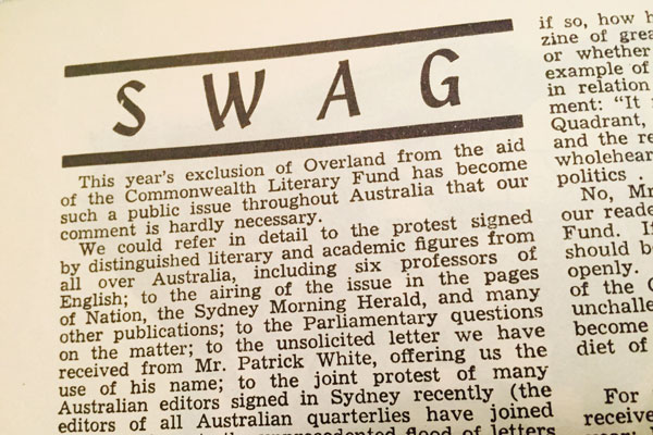 Published 19 May 201612 September 2019 · arts funding / Activism The fight for funding Jacinda Woodhead Is there anything left to say about the current arts funding crisis in Australia? Many writers have already covered the ins and outs: Esther Anatolitis on what next; Kate Larsen on the danger to literature in particular; Alison Croggon’s summary of the past couple of years, ‘Black Friday’; Anwen Crawford on the importance/devastation of youth arts funding; David Berthold on changing our funding demands; ‘Love, anger, money’ by Gillian Terzis at The Lifted Brow; plus countless other pieces from various theatre-makers, actors, dancers and peak bodies. There was also our petition to George Brandis last year, signed by hundreds of artists, after he cut $105 million from the Australia Council to establish his own slush fund; and our petition from 2014, too, which was organised by literary magazines and also signed by hundreds of artists, when the government announced the first round of cuts to the Council in conjunction with a horribly grim budget. More recently, we published Ben Eltham’s searing indictment of the way funding is distributed, ‘The excellence criterion’, and of course Alison Croggon’s much cited, ‘Why art?’ But we have always had to fight for arts funding. Decades ago, artists and writers ran a long and bloody campaign to establish what is now the Australia Council model, a fight Overland’s founding editor Stephen Murray-Smith was very involved in, as his litany of editorials devoted to the problems with literary funding attest. I agree with Kate Larsen that literature is especially endangered right now: the arts have been underfunded by successive governments, and literature has always received, in the words of Stephen Murray-Smith, the least ‘superphosphate’. In part this is because we’re not really seen as an art form, given the commercial publishing market (as if a literary magazine could compete with a publication like The Monthly), but also because we run on extremely slender budgets and a helluva lot of volunteer labour. Nevertheless, I would argue, we are the most efficient of all the forms, with every cent going into producing more and more new work. Arts funding is something that should be a given in Australia, a social necessity. In a true democracy, we would see more funding for areas that benefit people – health, education, arts, science – instead of submarines and offshore torture camps. Overland was lucky in an extraordinarily restrictive funding round – but given the calibre of the many excellent organisations that missed out, luck is all it feels like. History is no doubt an advantage when it comes to funding and longevity, as we can see through the many authors reminiscing about Express Media and Meanjin, and how those organisations helped them develop their craft, or offered them the space to contribute to Australian culture. History can be a hindrance too, as Terzis writes: ‘Investment in arts,’ Gough Whitlam once wrote, ‘will produce a fair amount of dross’. ‘It will attract its fair amount of charlatans and mediocrities.’ He wasn’t wrong. Grant culture can be stultifying. It can keep obsolescent publications afloat for far longer than their natural shelf-life. It can deter people from taking risks. But what does it mean for a publication to be staid? Presumably staid publications have no readers, but that’s hardly the case for any of Australia’s literary magazines. There will always be journals that take fewer risks, but while funding may reward some levels of repetition, it can also provide the space to support other kinds of writing. This, more than anything else, is an argument for more funding: we need a wide variety of literary magazines healthy enough not only to be able to pay writers and editors, but also to challenge what it means to produce Australian literature in 2016 and 2017 and beyond. Of course it is important to subscribe to literary journals. Perhaps you love the Australian textual landscape, whether poetry, fiction or essay. Or maybe you want to participate in that publication; maybe you simply want it to continue. But we can’t reduce the value of literature and literary journals to that of the market. The market can’t replace the fact that literary culture is not a competitive product. And perhaps it’s not a product at all, but a space. Funding creates a space for artists and writers to push against the literary edges, to experiment – something that’s hard to measure, involves a high risk of failure and thus so rarely seen as a ‘good investment’, and yet it is imperative. In many ways, the literary landscape is always on the edges, because literary culture is a niche passion. Funding has allowed Overland to publish electronic poetry and experimental fiction, create our inaugural residency, run literary competitions, and publish more than 450 new works a year. As of 2017, we’ll also be able to pay writers more. But we need a diversity of publications and of writers – culturally, formally and in terms of content. No one publication can do everything and nor should it. That would presume we are all identical and would weaken our cultural imaginings. ‘I would like to think that the present Meanjin is a lineal descendant of all that has gone before,’ Jim Davidson wrote to Clem Christensen in 1982. I feel similarly about Overland. Even today, we are guided by our founding editorial message, penned by Stephen Murray-Smith in 1954: The magazine will publish poetry and short stories, articles and criticism by new and by established writers. It will aim high … [but] will make a special point of developing writing talent in people of diverse backgrounds. We ask of our readers, however inexpert, that they write for us; that they share our love of living, our optimism, our belief in the traditional dream of a better Australia. Nowadays I replace ‘Australia’ with ‘