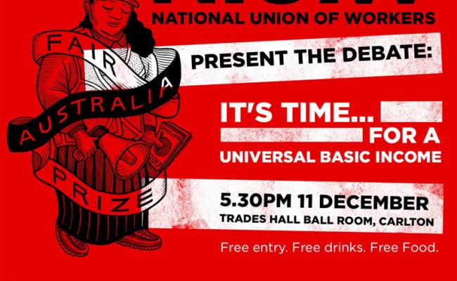 Published 30 November 201711 December 2017 · Events / Announcement A lively debate on the universal basic income! Editorial team It’s time … for a universal basic income? 5.30pm (for a 6pm start), Monday 11 December Ballroom, Trades Hall 54 Victoria St Carlton Free food, free drinks, free event! Overland and friends at the National Union of Workers are hosting a lively debate on the topic of a universal basic income and whether it’s a solution to rising inequality. Ready to battle it out on the night are co-founder of the Safe Schools Coalition Victoria, Roz Ward; writer, actor, academic and activist Gary Foley; former deputy prime minister Wayne Swan; and writer and presenter Helen Razer. Overland’s deputy editor Sian Vate and the NUW’s Godfrey Moase will co-MC the night. There will also be readings from the edition’s contributors. *Unfortunately Gary Foley can no longer attend. We’ll be announcing a fourth guest shortly. Editorial team More by Editorial team › Overland is a not-for-profit magazine with a proud history of supporting writers, and publishing ideas and voices often excluded from other places. If you like this piece, or support Overland’s work in general, please subscribe or donate. Related articles & Essays 16 February 202419 February 2024 · Announcement Statement of the Board of Overland Literary Journal Editorial team We, the Board of Overland literary journal, make the following statement in support of Editors-in-chief Evelyn Araluen and Jonathan Dunk and the entire Overland staff. We are a diverse Board made up of writers, unionists, lawyers, academics, activists, and arts industry workers. Our Board includes First Nations peoples as well as members of Australia’s Jewish community. 3 November 202330 October 2025 · News Friends and Sponsors Editorial team Thank you to our sponsors for their generous contributions to the 2024 Overland Subscriberthon!
