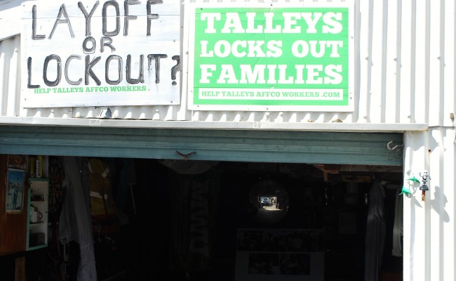 Published 1 June 201813 July 2018 · Reflection / Labour rights / Activism If we don’t make this stand, who will? Ross Webb Pete Amato didn’t plan on being a meatworker. He left home after school and went straight to Auckland to study fine arts. After art school, he stayed in Auckland, working as a bartender. He was doing well for himself, making decent money. But he was drawn back home. Home was Wairoa, a small town located in Hawke’s Bay, halfway between Gisborne and Napier with a population of about 4,000. It is a predominantly Maori town. On the south side of the Wairoa River, which cuts through the town, is a line of shops and cafes dotted along Marine Parade. On the North bank, a rugby field and the AFFCO meat plant. This large factory, the main employer, dictates the rhythms of the town; money flushes into the town during the season and then drains out as families rely on savings to get them through the off-season. At the age of twenty-four, Amato got a job at the meat plant, in the beef house. ‘I came back and was happier,’ he tells me. ‘You can’t beat home. This is where I wanted to settle. And part of that was becoming a meatworker.’ The work was hard, fast and, by its nature, brutal and stomach churning. It was also, at times, incredibly dangerous. Sharp knives, noise, heat and steam, and massive and, at times, unpredictable animals. ‘One gets out, it’ll kill you,’ Amato explained. Peter Amato (photo by Ross Webb) But within that environment, a workplace culture based on solidarity, whanaungatanga, mutual support, and humour was maintained. On his first day, the old hands, some of whom were his uncles, called him over in the canteen to sit with them. ‘They’d say: “come here, boy. Come sit here and have a feed with us.”’ Amato was looked after – though, in truth, everyone was at the meat works. ‘That’s why you became a meatworker,’ Amato said. ‘That’s why you didn’t mind being a meatworker. There’s a family environment there that no-one talks about.’ Amato, now an old-hand himself, passes this on to the next generation of meatworkers. Out in his garage at the back of the house, a road over from the meat plant, Amato started painting again for the first time in years. But he did so largely to deal with stress. For three months, he was without work, without income, without certainty. Locked out by his employer and unable to go back, unless he signed an Individual Employment Agreements (IEAs) and left his union. This was something Amato would never do. For much of provincial New Zealand, meat plants are an anchor in communities with few other employment options. Since 2010, however, AFFCO Wairoa has been at the centre of one of the most bitter and protracted industrial disputes in New Zealand’s recent history. The New Zealand Meatworkers Union and the company have been engaged in a dispute – including lockouts, strikes, and battles in the courts – that has spanned the entire country, has divided families and caused economic hardship in small towns across the country. But Wairoa has been hit the hardest. And it is here, in this small Hawke’s Bay town, that the debate about the future of New Zealand’s workplace relations policy really matters. Wairoa is a town deeply affected by the impacts of job insecurity and the legacy of an industrial dispute. Will the new government’s workplace legislation change that? Daphne Wharehinga was born and raised in Wairoa. ‘I loved it,’ she said. ‘We had the river. It was just a beautiful place to live. It’s easy going, people are awesome, the town is awesome and I have no desire to be anywhere else, but here.’ Wharehinga’s father was a meatworker. He signed her up to the meat works in 1994 and she has been there ever since. She worked alongside her partner, Loncey Crawford, who also spent much of his childhood in Wairoa. ‘I think there’s a misconception about Wairoa in the media,’ Crawford said. ‘It’s always portrayed as a gang town. But it’s not until you live here that you realise that that part of it doesn’t make this town … I had a brilliant childhood in Wairoa.’ Crawford didn’t plan on staying at the meat works for long: ‘I got the job as a holiday job. I ended up being on holiday for 20 years. I didn’t know why anyone would want to leave.’ It was at AFFCO Wairoa that Crawford and Wharehinga first met, in what was known as the ‘head room’, ‘splitting heads, taking brains out’. Crawford joked: ‘She met this amazing looking green-eyed Maori boy.’ Wharehinga added, ‘I walked into the room and thought, far, he’s pretty alright!’ Loncey Crawford and Daphne Wharehinga (photo by Ross Webb) Wharehinga and Crawford loved working at AFFCO over the next two decades. ‘Everyone was one’, Wharehinga said. ‘And it was just a really neat place and environment at that time … I always loved to get up and go to work. You’d see your friends, see your family, get the job done and go home.’ Crawford added, ‘It was great because of the understanding that everyone was the same. You weren’t going to get treated differently. We were all union, all of us under that umbrella were treated the same and we could get on with it.’ ‘If it was still like that I would never have left,’ Crawford added. Things started to change in Wairoa after 2010. This was triggered by a change in ownership at AFFCO. In 2001, the agribusiness giant Talley Group bought a 10 per cent stake in AFFCO meat company, increased that to a controlling stake in 2006 and acquired the remainder in 2010. Some commentators were enthusiastic about their arrival on the meat industry scene. Alan Barber, an agricultural journalist specialising in the meat industry, wrote that ‘AFFCO under Talley’s direction is the most determined to challenge the status quo and test the boundaries’. But for union organiser Roger Middlemass, their arrival was ‘like a cold front arriving