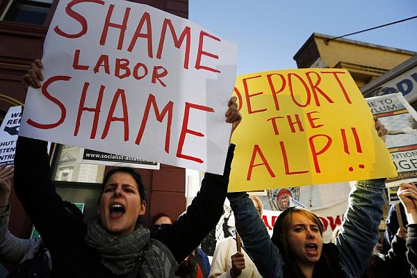 Image: A refugee rights protest outside the NSW ALP conference in Sydney in 2013.