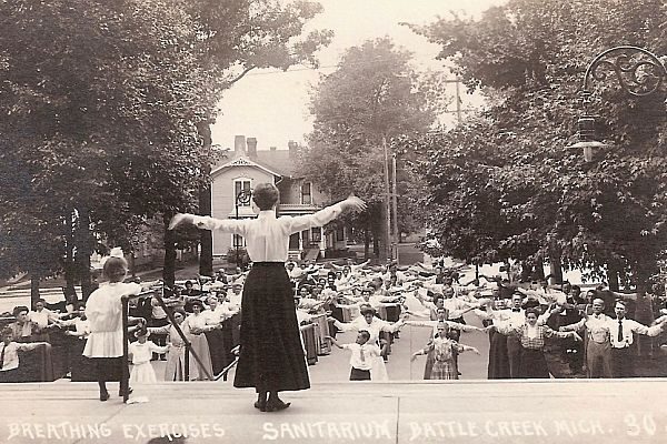 Published 2 April 20204 May 2020 · History / Food / Religion Cereal, circumcision and tax evasion: a history of John Harvey Kellogg Alice Peart At the turn of the 20th century, the landscape of Battle Creek, Michigan, was dominated by a vast wellness complex akin to a Roman bath or maybe Willy Wonka’s factory. Such was the imposing scale of the building on its surroundings. A wide flat road looped around the outside, leading up to the ionic-columned entrance. Tightly cropped lawns were studded with foliage and topiary. Advertisements claimed it to be the largest and most elaborately equipped health resort in the world. It’s a claim easy to believe. Tennis, golfing, tramping, swimming, motoring and luxury bath facilities were all apparently accommodated within the grounds, as were acres of farmland to grow the vegetarian diet dictated for the residents. This was Dr John Harvey Kellogg’s Sanitarium of biologic living. The thickly moustachioed man whose name is still synonymous with cornflakes began life in a family of early adopters of Michigan’s Seventh-Day Adventism, making him the natural heir to the health empire being built by the church. Despite little formal education, John – apparently a voracious autodidact – came to the attention of local church founders Ellen and James White and put through medical school under their auspices. It was there John would face a theological quandary that plagued the rest of his life. Unsatisfied by the Christian school’s staunch refusal to teach molecular biology, John matriculated into the mainstream system. Here he confronted the seemingly irreproachable difference between his Adventist beliefs and scientific rationalism. Rather than abandoning either, the doctor ventured to establish his own theology in an effort to unite the two. This caused a schism with his former mentor, Ellen White, who publicly admonished him, warning of apocalyptic consequences. Blessed with visions, she claimed to see ‘a sword of fire stretched out over Battle Creek’. Not long afterwards, a fire ripped through surrounding woodlands and razed the Sanitarium to the ground. Kellogg energetically set to work rebuilding the Sanitarium planning to use the proceeds of his soon-to-be-published book. In the next mysterious fire to hit the town, the publishing house was burnt down. * More recently, a Pentecostal suburban dad has proposed that faith-based hospitals should have the ability of medical staff to impose their religious beliefs on patients. An approved example in the amended legislation of what would be newly considered lawful behaviour included psychiatric advice to a depressed patient to ‘look forward to the kingdom of heaven’. This was drawn from a 2013 case where the doctor further told the patient to seek God’s forgiveness for the death of her son following a miscarriage. As for Kellogg, the religious conception of soul became inseparable from his medical practice. The soul – that which is resurrected upon the Second Coming of Christ or suffer the eternal licks of the flaming inferno – has a central place in Adventist theism. In Kellogg’s interpretation, this took on a more physical manifestation. He came to believe that it was the indwelling of God in every cell and microbe that sustained and renewed life: It is God that grows the plant; it does not grow itself; it is divine power, which is in all things and in all matter [and] is the same divine power working in my body that makes me what I am, and that makes you what you are. The consequences for the human body – the ‘true tabernacle of God’ – is that cellular turnover and autonomic functions were seen by Kellogg as subject to degeneration through sin. As historically interesting this theological turn is, I can’t imagine that the children he went on to circumcise without anaesthetic, using scalpels and carbolic acid, cared greatly about the differences between an immanent or anthropomorphic god. How small they must have felt in comparison to the surgeons and nurses operating on them. Did they believe it was for their own good? Had the scientific rationalisation by Kellogg been sufficiently convincing that they came to believe with an incision or burn they could excise Satan from their bodies? Kellogg proposed circumcision as a last resort solution to the sin of ‘self-abuse’, arguing that the operation should be performed by a surgeon without administering an anaesthetic [to] have a salutary effect upon the mind, especially if it be connected with the idea of punishment, as it may well be in some cases. Kellog’s writings often make for grim reading. Under his theology, the body was simultaneously an expression of morality, and the care of the body was an act of moral good for the soul. The pursuit of health was a high-stakes game in which babies could imbibe a mother’s lasciviousness through her milk; in which tobacco converted ‘the once chaste and pure youth into a veritable volcano of lust, belching out from its inner fires of passion torrents of obscenity’; in which intestinal worms, constipation and bladder irritation would lead to unchastity; in which brunettes were naturally more sexually precocious; a game, finally, in which nothing was more inhuman than the ‘exhibitions made in satisfying the mania for female pedestrianism’. There are however clear moments of genuine tenderness towards his patients, notably women suffering the physical impacts of dominant fashions. A study conducted by Kellogg and his colleagues found women wearing bone corsets were only capable of using half their lung capacity. He dedicates many pages to detailing the impacts and remedies for menorrhagia and dysmenorrhoea (endometriosis), and speaks forthrightly against what sounds a lot like marital rape. But what sticks in the mind is his specific hatred of masturbation: The sin of self-pollution is one of the vilest, the basest, and the most degrading that a human being can commit