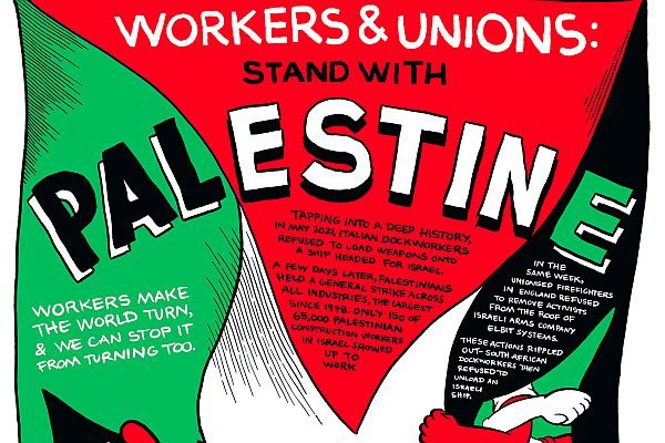 Published 24 May 202129 June 2021 · Cartoons / Palestine / Unions Workers and unions: stand with Palestine Sam Wallman Sam Wallman Sam Wallman is a writer, illustrator and dockworker based on Wurundjeri country. You can follow his work here. More by Sam Wallman › Overland is a not-for-profit magazine with a proud history of supporting writers, and publishing ideas and voices often excluded from other places. If you like this piece, or support Overland’s work in general, please subscribe or donate. Related articles & Essays 7 April 20269 April 2026 · Unions Peering into the docks: a conversation with the Wharfies Mural Sam Wallman People are deeply curious about the docks. The port is right there, the cranes are giant shapes looming, so often visible, stretches of landscape inviting reflection and curiosity. But the docks are also completely inaccessible. They are non-spaces really, to most people. Exclusion zones. 6 March 202610 April 2026 · CoPower Trying really hard not to make a comic about critical minerals Sofia Sabbagh I'm trying really hard not to make a comic about critical minerals. 'Cos I know, my mum tells me, "it just doesn't resonate". Unless it's a personal story, critical minerals seem too far removed from our lives.