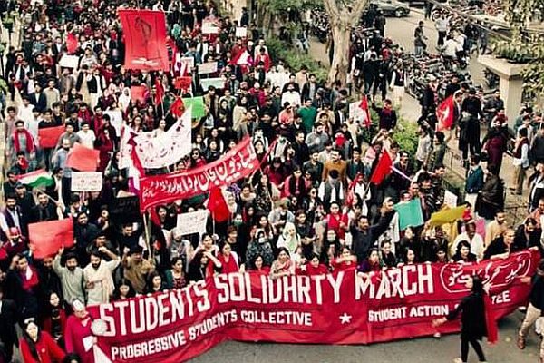 On a crispy November evening of 2019, Lahore’s smog filtered sky was buzzing with drone surveillance cameras, radiating an orangish glow over around 5,000 young protestors who had assembled at the chowk of Punjab Assembly. For the emerging student activists, the fight was not just to restore student unions banned under a military dictatorship three decades ago, but to reimagine the university as a fundamentally political space. And doing so, for them, was as much a struggle for recognition, akin to screaming from their metaphorical lamp-posts: ‘Look here, we exist.’ It was also an attempt to dis-settle the university from a state oft-described in Urdu as a jamood: a stasis, a sense of frozen-ness and immobility.