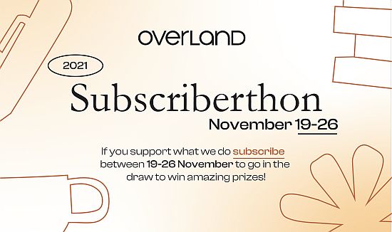 Published 21 November 202129 November 2021 · Main Posts / Subscriberthon 2021 Subscriberthon 2021: The weekend edition Editorial team Hello friends, Sit back and relax. The weekend edition of Subscriberthon’s got you sorted. For your reading pleasure we have Dženana Vucic’s aching memoir ‘A teology of folding, and of dying‘, Mykaela Saunders’ Oodgeroo Noonuccal Prize 2020 winning piece ‘Choice cuts‘ and our favourite cartoonist Sam Wallman’s take on swimming in the Yarra. We’ve also created our very first Overland Word Search, complete it digitally or print out a copy at home! So, how does Subscriberthon work? Anyone who subscribes, renews, donates or gives a gift subscription this week goes into three prize draws – Major Prizes, Daily Prizes and Regional Prizes – for the chance to win some truly terrific prizes, including a state-of-the-art turntable, drinks and vinyl pairings, a point-and-shoot vintage camera, a 6-month coffee subscription, digital literature workshops, event and exhibition passes, wine, mountains of books, subscriptions and more! Today’s prize: Books & Chill ☟☟☟☟ An amazing 6-month Core Roasters coffee subscription (250g bag delivered to your door once a month) A unique Kuura puer tea starter pack 2 bottles of Noisy Ritual Geelong Pinot A fresh fruit and veg box from The Flying Zucchinis, delivered to your door! $30 voucher Brunswick Bound A copy of Aniko Press Issue 2: Revolt A Clothing the Gaps sticker pack A massive hardback collection of Vagabond titles An enviable stack of Scribe titles Major prizes ☟☟☟☟ Major Prize One Record Rewind What’s in this major prize? An absolutely state-of-the-art Audiotechnica turntable from Vinyl Revival A $50 Vinyl Revival voucher A mind-blowing vinyl and beer pairing from Funky Duck Vinyl: Both Sides of the Sky (Beach Boys) + Blackbilly Sangiovese 3 x $30Bookshop by Uro vouchers to A Clothing the Gaps sticker pack ✎ ✐ Major Prize Two Next Big Adventure What’s in this major prize? A vintage Yashica point-and-shoot camera from Film Never Die. 5 rolls of Ultramax 400 35mm film A two-year international subscription to adventure travel magazine Overland Journal A beautiful ‘Coral’ archival pigment print by Matt Chun A Clothing the Gaps sticker pack Take me to the subscription options at once! Read all about our incredible sponsors here! Editorial team More by Editorial team › Overland is a not-for-profit magazine with a proud history of supporting writers, and publishing ideas and voices often excluded from other places. If you like this piece, or support Overland’s work in general, please subscribe or donate. Related articles & Essays 20 March 20262 April 2026 · Main Posts Final results of the 2025 Judith Wright Poetry Prize Editorial team Established in 2007 and supported by the Malcolm Robertson Foundation, the Overland Judith Wright Poetry Prize seeks outstanding poetry from new and emerging writers. This year’s judges, Shastra Deo, Harry Reid and […] 20 March 202620 March 2026 · Main Posts Final results of the 2025 Neilma Sidney Short Story Prize Editorial team Established in 2007 and supported by the Malcolm Robertson Foundation, the Overland Neilma Sidney Short Story Prize seeks outstanding original short fiction of up to 3000 words themed loosely around the notion […]