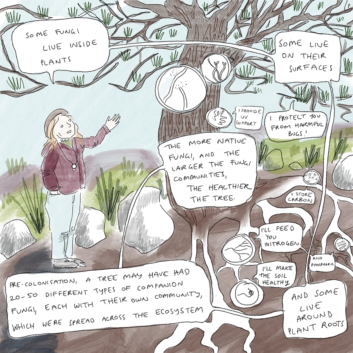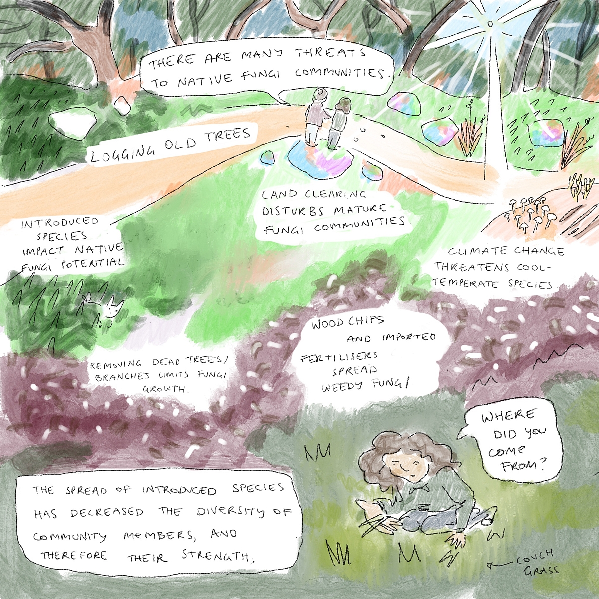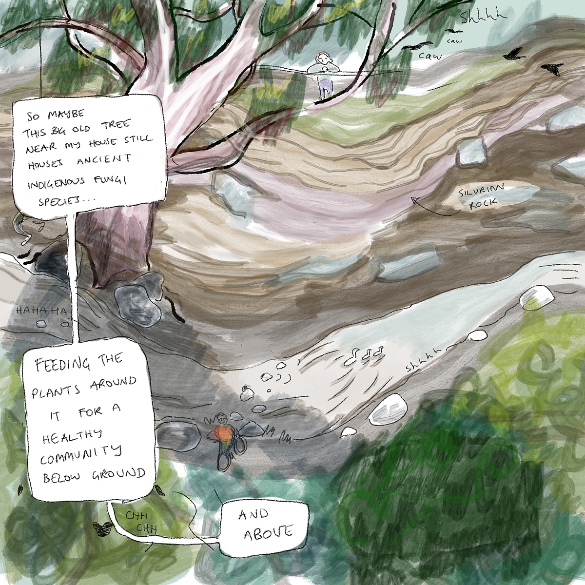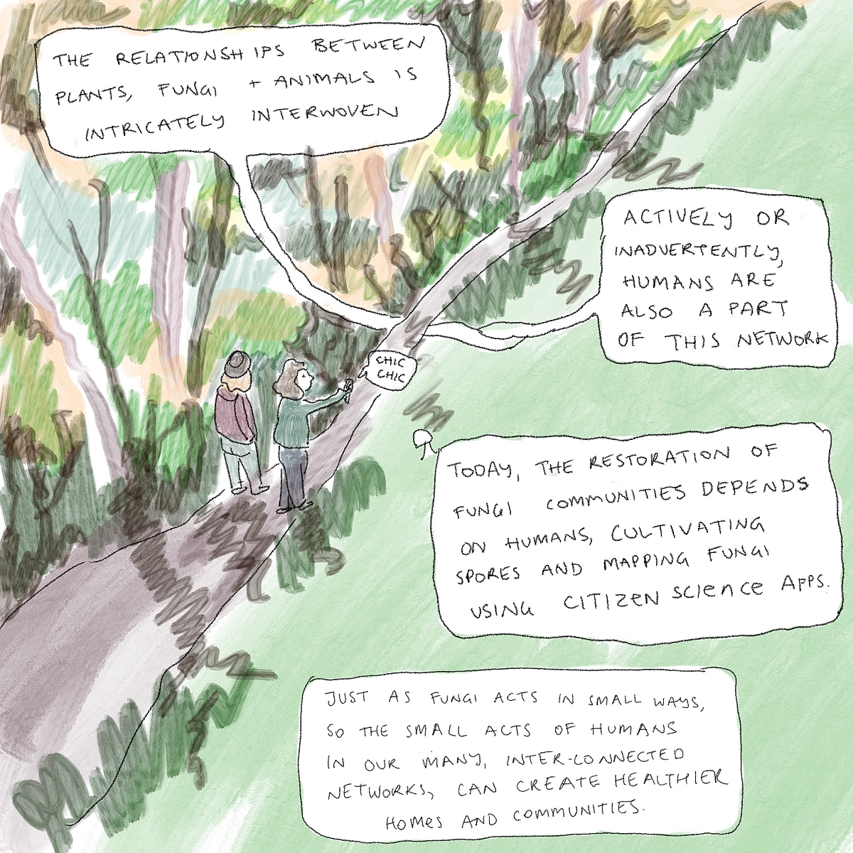 Published 17 April 202318 April 2023 · Cartoons / ecology A brief natural history of fungi in Australia Sofia Sabbagh Sofia Sabbagh Sofia Sabbagh is an illustrator and comic artist of Irish and Palestinian descent, based on stolen Wurundjeri land. More by Sofia Sabbagh › Overland is a not-for-profit magazine with a proud history of supporting writers, and publishing ideas and voices often excluded from other places. If you like this piece, or support Overland’s work in general, please subscribe or donate. Related articles & Essays 17 March 202617 March 2026 · ecology Carrying country – the unseen emotional labour of environmental defence Jens Kirsch Daniel Garlett is a Noongar cultural educator and community advocate who has spent decades opposing logging, mining, and large-scale land clearing in Western Australia’s forests and catchments. He lives here because he says he cannot live anywhere else. The quiet, the canopy, and the smell of damp earth after rain are not amenities. They are conditions of life. 6 March 202610 April 2026 · CoPower Trying really hard not to make a comic about critical minerals Sofia Sabbagh I'm trying really hard not to make a comic about critical minerals. 'Cos I know, my mum tells me, "it just doesn't resonate". Unless it's a personal story, critical minerals seem too far removed from our lives.