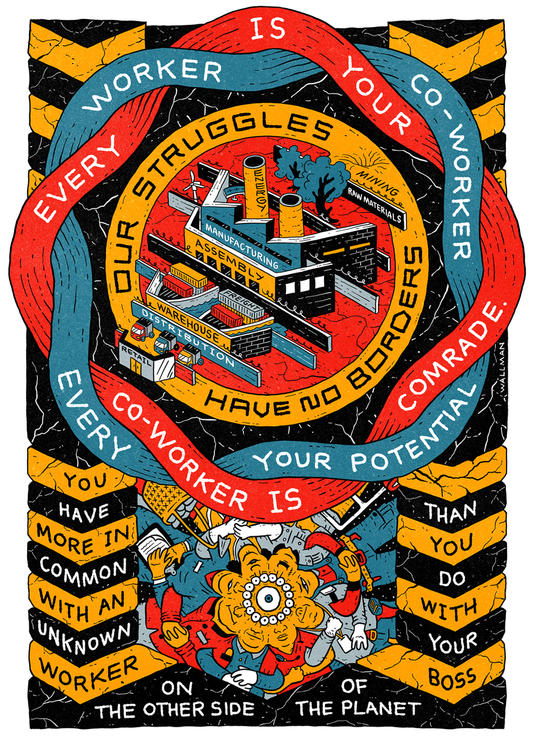 Published 24 August 2023 · Cartoons Our struggles have no borders Sam Wallman Sam Wallman Sam Wallman is a writer, illustrator and dockworker based on Wurundjeri country. You can follow his work here. More by Sam Wallman › Overland is a not-for-profit magazine with a proud history of supporting writers, and publishing ideas and voices often excluded from other places. If you like this piece, or support Overland’s work in general, please subscribe or donate. Related articles & Essays 6 March 202610 April 2026 · CoPower Trying really hard not to make a comic about critical minerals Sofia Sabbagh I'm trying really hard not to make a comic about critical minerals. 'Cos I know, my mum tells me, "it just doesn't resonate". Unless it's a personal story, critical minerals seem too far removed from our lives. 23 February 202623 February 2026 · Right to protest Colonial authoritarianism did not start with Chris Minns Eav Brennan On 10 February 2026, a crowd gathered a Surry Hills police station on Gadigal Country. It was a snap action to protest against the police brutality of the day before.