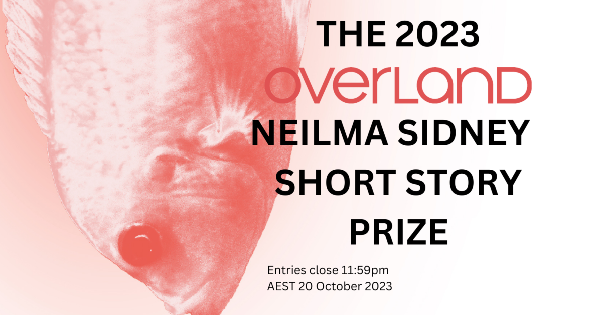 Published 8 September 202320 October 2023 · Main Posts Announcing the 2023 Neilma Sidney Short Story Prize ($6500) Editorial Team About the prizeSupported by the Malcolm Robertson Foundation, and named after the late Neilma Gantner, this prize seeks excellent short fiction of up to 3000 words themed around the notion of ‘travel’; imaginative, creative and literary interpretations are strongly encouraged. This competition is open to all writers, nationally and internationally, at any stage of their writing career.The winning story will receive a $5000 first prize and be published in Overland. Two runners-up will each receive $750 and be published at Overland online.DetailsThe prize has been extended and will now close 11.59 pm, Friday 10 November 2023. Please read the entry guidelines below to confirm eligibility.Entry fee: $12 for subscribers and $20 for non-subscribers.Another option is to take out one of our special prize subscription: for $62, you get discounted entry and a discounted subscription to Overland, which includes four print issues, access to the daily online magazine, and invitations to subscriber events, opportunities and giveaways.You may also be interested to read last year’s winning story.This year’s judges are Patrick Lenton, Sara Saleh and Alice Bishop.GuidelinesThis is a prize for original pieces of short fiction written in English, up to 3000 words in length. Stories must be unpublished (including online) and not under consideration by other publishers, including Overland. Stories that have won or are under consideration in other competitions are not eligible. The prize is open to all writers (located in Australia or elsewhere). Submissions will be processed electronically. Stories should be formatted at 1.5 line spacing and a minimum of 12 point font size (unless formally experimental). The competition will be judged anonymously. The author’s name must not appear on the manuscript or else the story will be disqualified. Multiple entries are acceptable, although each must be entered into the submission system separately and accompanied by the relevant fee. The winning entries will be published in Overland in 2024. Other entries may be considered for publication. The judges’ decision is final. No correspondence will be entered into.A final note on submission guidelines:In 2020 the Overland editorial team decided to include an additional question for entrants upon submission of their work to all major prizes. While we uphold the integrity of the blind judging process, it often places limitations on judges to properly assess the nature of a submission. Entries which speak directly to the experiences of marginalised or vulnerable communities are often difficult to assess with no knowledge as to whether the author has the relevant experience or cultural authority. It can be an agonising process for a judge to decide whether a piece is appropriate for publication when experience or identities are assumed or guessed. We want to encourage imaginative and provocative submissions without creating an additional burden for our judges, or potentially restricting the selection of sensitive pieces. You can read more about the policy here.Entrants will have the option to answer the following voluntary question:If your entry takes up the voice or experience of a marginalised or vulnerable identity, do you identify yourself as being a part of that community or experience? For instance, if your piece is written in the voice of an Aboriginal person, are you Aboriginal? etc. Your response to this question is not mandatory, and your response will only be visible to internal editors, unless our judges request to know your response after the consideration of a piece.Enter the Neilma Sidney Short Story Prize as a:new subscriber – $62 (Includes $12 entry fee and $50 subscription)Writers can subscribe to Overland for one year (four issues) at a discounted rate, and enter the competition at the special subscriber rate. Take out a new subscription and enter the Neilma Sidney Short Story Prize.current subscriber – $12 Current Overland subscribers enter the competition at the special subscriber rate of $12. Current subscribers enter the competition here.non-subscriber – $20 Entry to the competition for non-subscribers is $20. Non-subscribers enter the competition here.The Neilma Sidney Short Story Prize is supported by the Malcolm Robertson Foundation Overland is a not-for-profit magazine with a proud history of supporting writers, and publishing ideas and voices often excluded from other places. If you like this piece, or support Overland’s work in general, please subscribe or donate. Related articles & Essays 20 March 20262 April 2026 · Main Posts Final results of the 2025 Judith Wright Poetry Prize Editorial team Established in 2007 and supported by the Malcolm Robertson Foundation, the Overland Judith Wright Poetry Prize seeks outstanding poetry from new and emerging writers. This year’s judges, Shastra Deo, Harry Reid and […] 20 March 202620 March 2026 · Main Posts Final results of the 2025 Neilma Sidney Short Story Prize Editorial team Established in 2007 and supported by the Malcolm Robertson Foundation, the Overland Neilma Sidney Short Story Prize seeks outstanding original short fiction of up to 3000 words themed loosely around the notion […]