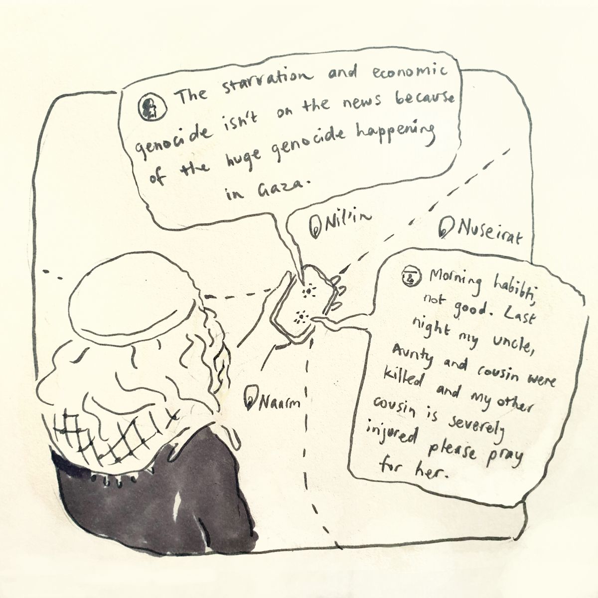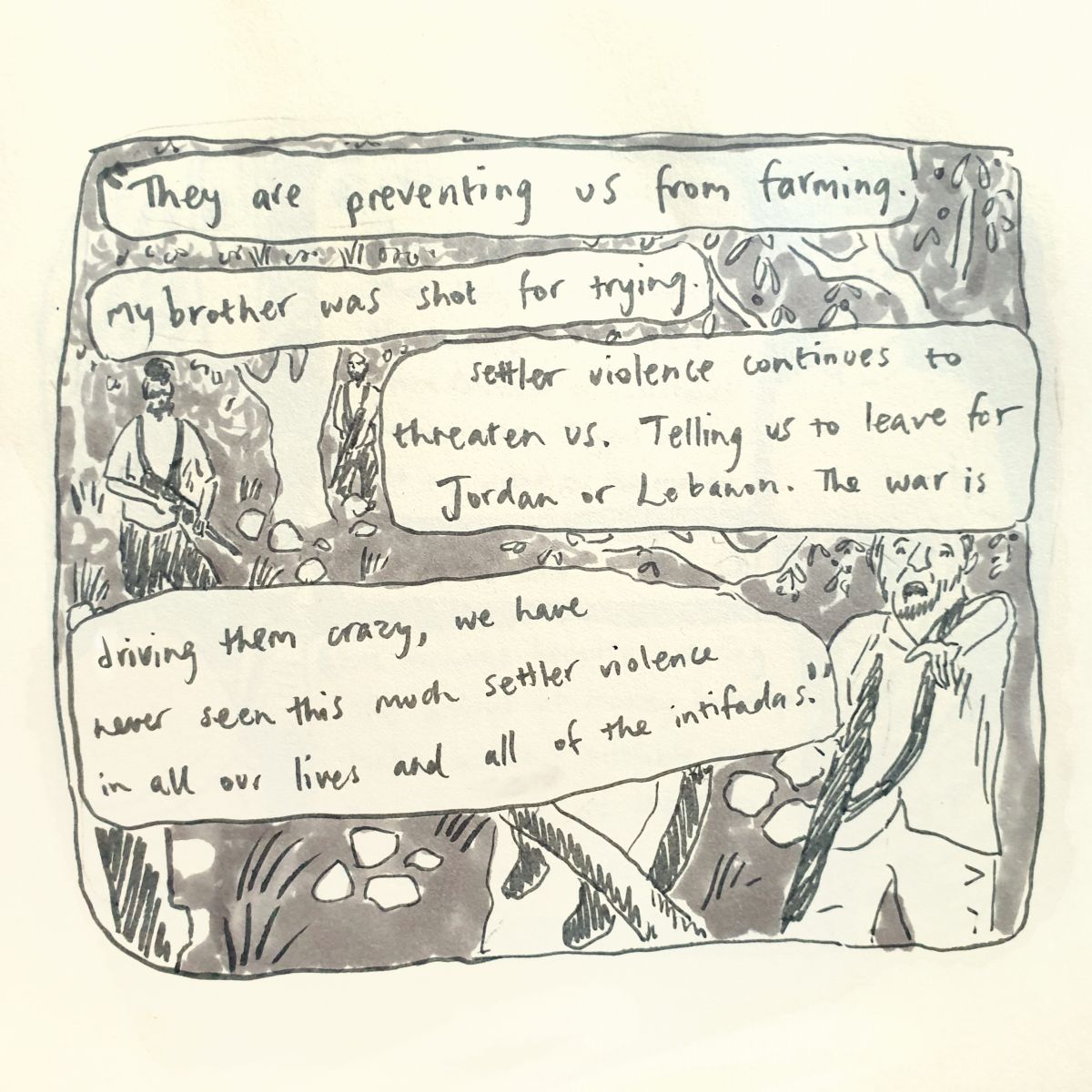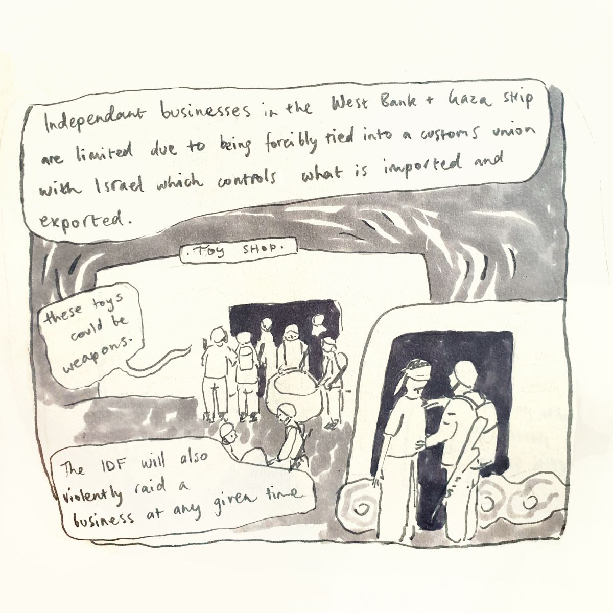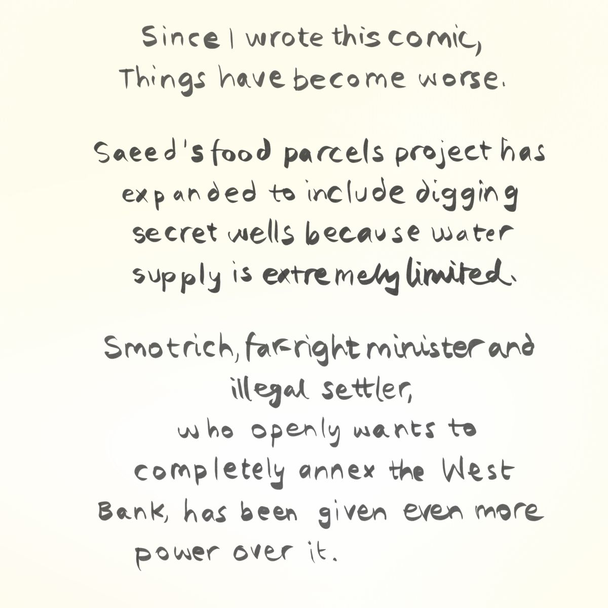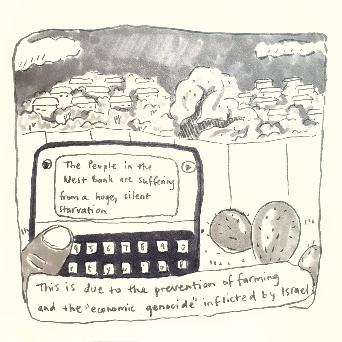 Published 9 July 20249 July 2024 · Cartoons / Palestine Saeed’s food parcels Sofia Sabbagh To support Saeed’s work, you can donate to PayID 0455 978 052, or check back in later this week for the official Chuffed fundraiser. Sofia Sabbagh Sofia Sabbagh is an illustrator and comic artist of Irish and Palestinian descent, based on stolen Wurundjeri land. More by Sofia Sabbagh › Overland is a not-for-profit magazine with a proud history of supporting writers, and publishing ideas and voices often excluded from other places. If you like this piece, or support Overland’s work in general, please subscribe or donate. Related articles & Essays 6 March 202610 April 2026 · CoPower Trying really hard not to make a comic about critical minerals Sofia Sabbagh I'm trying really hard not to make a comic about critical minerals. 'Cos I know, my mum tells me, "it just doesn't resonate". Unless it's a personal story, critical minerals seem too far removed from our lives. 23 February 202623 February 2026 · Right to protest Colonial authoritarianism did not start with Chris Minns Eav Brennan On 10 February 2026, a crowd gathered a Surry Hills police station on Gadigal Country. It was a snap action to protest against the police brutality of the day before.
