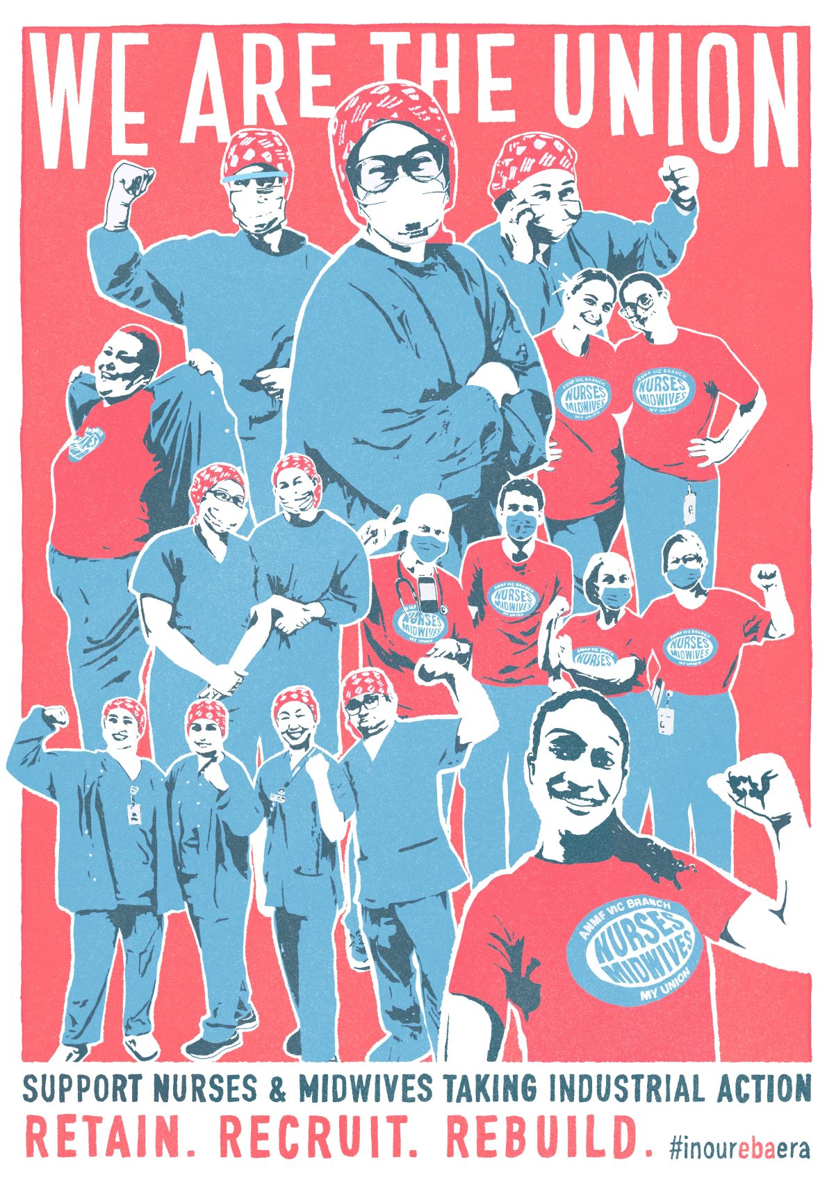 Hollie Moly is a member of the Australian Nursing and Midwifery Federation (Victorian Branch) working in the public sector. She is also an illustrator and member of the Workers Art Collective, and is based on unceded Wurundjeri Country.