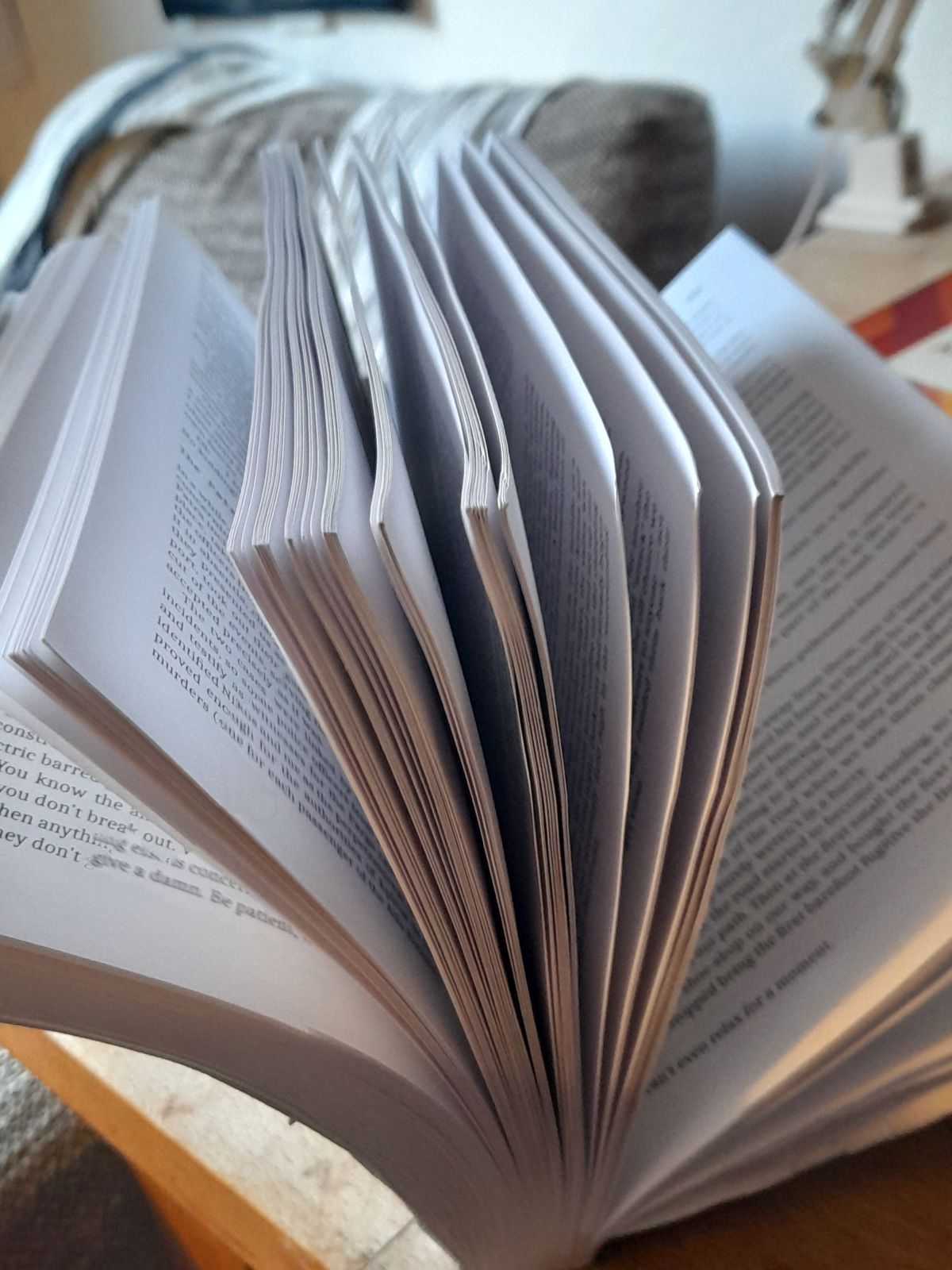 Published 19 August 2024 · Publishing On binding and paper grain: the book as object Murdoch Stephens As the founding editor of Lawrence & Gibson publishing collective, I’ve bound about 14000 books in my life. Our collective hand makes books in a little office in central Wellington. We’re nineteen years in and have thirty-two titles to our credit. When I say I hand-make books, people immediately think of industrial revolution-era machines with stitched bindings and offset plates. Not so! Nor are we the new school of fully automated print on demand. We have a printer, two guillotines a binding machine and a crimper. Our technology is slightly out of date — all the equipment is second-hand and was acquired at bargain-basement prices. I’ve made some damn ugly books in my time, and I am not talking about the aesthetics of the cover. I mean lopsided, under- and over-glued and with skewwhiff margins. As with any manufacturing, the trick is not letting anyone other than your own team see the mistakes. In this time, I have learned a little bit about the process. I want to share some of these thoughts because so many people have so much love for books and perhaps some material understanding of the paper and the binding process may sharpen that understanding and that love. I am also aware that I am a little bit of an amateur in the world of commercial book-binding. The division of labour between a publisher and a printer is stark and I don’t think there ever was a simpler time when they were one and the same. Perhaps they are only out of necessity: underground presses being literally underground … have you seen the means the pre-Soviet communists or the Soviet-era liberals went to hide their operations? Wells, basements, tunnels and caves: that’s what it means to be underground. Here are some things that not everyone knows about books. 1. Paper has a grain This is the simplest of the lessons of a book and one of the most consequential for the reading experience. In the manufacturing of paper from wood pulp, the fibres of the paper are all pushed in one direction. This direction of the grain needs to be recorded because it is not always obvious. The normal format is for the grain to travel from bottom to top on a page held in portrait. This is called long grain, as the page is grain follows the longer edge. Short grain, as one might expect, is when the paper fibres travel from the bottom to the top on a page when held in landscape view. One way to tell which direction your paper grain goes is to rip a page: if your rip from top to bottom follows a more or less straight line, then it is more likely to be long grain. If the rip is irregular, zig-zagging, then you are likely to have short grain paper. If you’ve ever had experience splitting wood, a similar logic applies: it makes for a much cleaner cut to split wood along the grain than against it. The tearing of paper is not a full-proof method, however, especially for people unfamiliar with what to look for. Another, less barbaric method is to test how easily the page curls. If the grain is long, then it is easier to curl it when held vertically compared to horizontally. Every book should be bound in the same direction, since the grain runs so that the pages more naturally curve as you splay them. I’m currently reading a novel that is bound against the grain and the pages give a lot of resistance when I try to hold the book open and turn them. Instead of the lovely curl of pages, holding the book open produces more of a V. You may well have read books that you have fought to hold the pages open, unsure why the experience was less straightforward than usual. This most often happens with small binders — like us! — who acquire paper in all sorts of manners and don’t think about the direction of the paper’s grain. One of the most common mistakes for new binders is to make an A5 book by printing two on a standard A4 printer paper. But because the grain is long on the A4, it will be short on the A5. The paper in our collective’s first run of our second book had the paper grain going in the wrong direction. At that point I knew nothing about grains, and just thought that something weird was going on with the paper itself, or perhaps the binding. It was only when the book was opened halfway through that the pressure really made itself known, cracking the glue on the spine. 2. The spine is a fulcrum There’s something so metaphysical about the way books affect us that sometimes we completely overlook their physics and mechanics. So often we think of a book as the meaning, the story, characters or facts within. But other than a repository of knowledge, a book is also a material thing. When we open a book, we apply the power of a lever on the spine: when the paper grain is in the correct direction, the page curls and very little pressure is exerted on the spine. When the grain does not allow an easy curl, more of the leverage goes onto the glue of the spine. The spine functions as a fulcrum: each page is a load and a book is a class-two lever, like a car door. Publishers try to make the spine as strong as possible. The notcher is a device used to strengthen the spine, by coarsening a block of pages before the glue is applied, increasing the area and number of fibres that are exposed to the glue. The more surface area covered by the glue, the more space the glue has to hold onto and the less likely it is to break when pressure is exerted on it. Think of a book made of heavy cardboard that won’t bend and will, instead, crack the page out of the spine. The reader uses the power of leverage from the outside of the page to break the book at the fulcrum. The flexibility of the page lowers the pressure on the spine. Another device used in the trade is the crimper. The crimper places a line on the book cover that guides the reader to bend the book there, and not at the spine. Whenever I get a new book, I open it deliberately at the crim