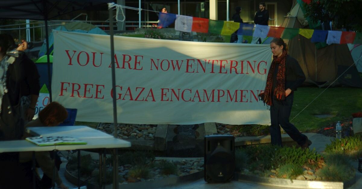 Deakin University is the only university in Victoria to have suspended or seriously disciplined students over the solidarity encampments which swept Australia and the world. The encampments were vibrant, peaceful and moving sites of protest against Israel’s genocide in Gaza. Deakin students camped on the main campus walkway for seventeen winter nights, creating a space for political discussion and protest. Banners and signs calling Palestinian liberation, Indigenous justice and women’s rights lined the pathway, leading up to a kitchen where students and staff visited the encampment. The campus stage, decked out in Palestinian and Aboriginal flags, was a site of daily teach-ins by community members including Indigenous, Palestinian, Jewish and Israeli staff and activists. Some of the teach-ins dealt with the Israel-Palestine conflict itself, discussing the history of the Nakba, Israel’s apartheid system, and the current war. Others dealt with previous struggles, like the 1946-49 Pilbara Strike by Aboriginal workers and the 2011 Occupy Wall Street movement. Students and staff held three large marches to support and defend the encampment.