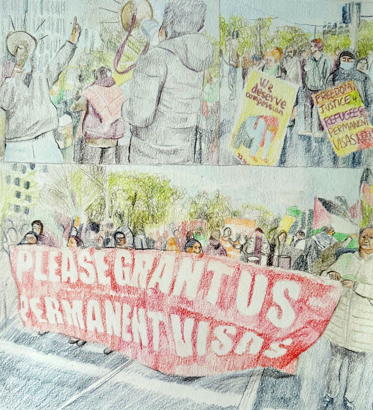 As we approach the 100th day, it’s important to highlight that we are changing the format of our campaign. While we are wrapping up this 24/7 action and bringing an end to the encampment, our fight for permanent visas for the 9,500 refugees will continue in other forms. We will be organising a National Day of Action, targeting the offices of Labor politicians, and setting up information stalls. We will continue this fight until every refugee impacted by the fast-track process receives a permanent visa. It is unacceptable for people who fled genocide and persecution to remain in limbo after 12 years of living in this community. Whether you fled the genocidal war in Sri Lanka or the oppressive regime in Iran, you deserve to live in peace—and this movement will continue to fight for every one of you.