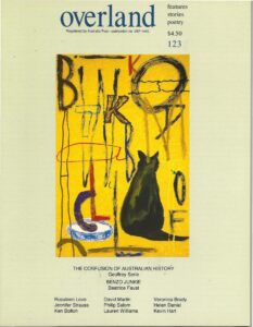 123 — 1991 Buy this issue How do I read this issue? The Overland print archives have been digitised! Use the viewer above to move through the issue. The PDF uses Optical Character Recognition, meaning that words in the document are recognised as text. You can download the PDF to open it in your PDF reader of choice. Issue Contents Browse the issue: Previous Issue 122 — 1991 Next Issue 124 — 1991