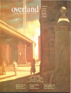 124 — 1991 Buy this issue How do I read this issue? The Overland print archives have been digitised! Use the viewer above to move through the issue. The PDF uses Optical Character Recognition, meaning that words in the document are recognised as text. You can download the PDF to open it in your PDF reader of choice. Previous Issue 123 — 1991 Next Issue 125 — 1991