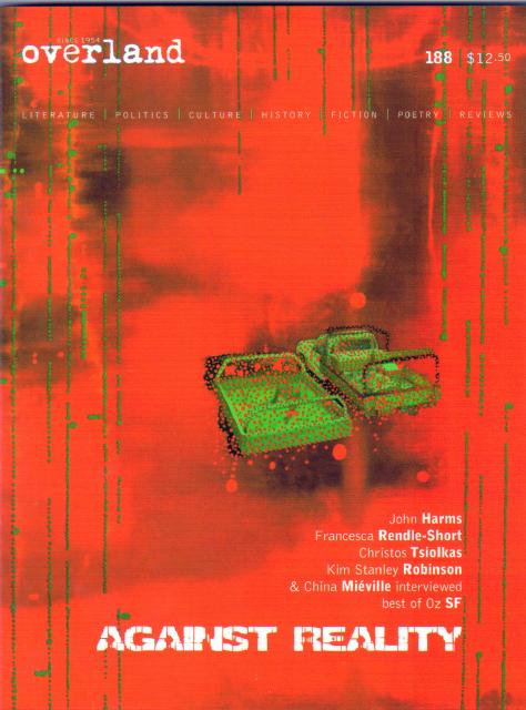 188 Spring 2007 Buy this issue Issue Contents Features The lives of an art house audience Christos Tsiolkas Cartography Blanche David Ritter On|Off Terry Eyssens Writing against reality Rjurik Davidson 101 Tin drums Fiona McGregor Poetry Rodent fugue Tim Metcalf The conservative forest Philip Neilsen 2007 Will Fraser Black blood Peter Lach-Newinsky Reviews Letters of love and fury Georgie Arnott Editorial Editorial Kalinda Ashton Browse the issue: Features Published in Overland Issue 188 Spring 2007 · Politics The lives of an art house audience Christos Tsiolkas It begins with a young man, terrified, panicked, being brought in for interrogation by a Stasi officer, Gerd Weisler (an excellent performance by Ulrich Mühe). You can almost smell the stink of the young man's sweat, of his fear; you can sense that he is going to piss himself. Cutting away from the interrogation itself, we are in a drab classroom where young students, training to be the future grey faceless men and women of the Stasi. Published in Overland Issue 188 Spring 2007 · Culture Cartography Blanche David Ritter Among the beneficiaries of Australia's twelve-year-old native title process have been the cartographers. Indigenous claimants and their opponents must have their interests in land mapped. The colourful results, representing familiar empty spaces cluttered as the Balkans with Aboriginal claims spelled with noodling vowels and diphthongs, festooned, for a time, offices across Australia. Published in Overland Issue 188 Spring 2007 · Politics On|Off Terry Eyssens I think it started when I was at school. A sense of not having anything to do with what I was supposed to be doing. It wasn't painful. It wasn't a hard school. I simply was not the slightest bit interested in the basic activity of being at school, being a high-school student. Published in Overland Issue 188 Spring 2007 · Culture Writing against reality Rjurik Davidson Speculative fiction - an umbrella term for science fiction, fantasy, horror and other non-realist forms - has always been peculiarly suited to political radicalism since the form investigates a world that is ‘other' to our own, a world which is in some way changed or altered. It is a thought experiment: by developing this sense of estrangement, science fiction asks us to think back upon our own society. Published in Overland Issue 188 Spring 2007 · Politics 101 Tin drums Fiona McGregor Entering the Gdańsk shipyards is more difficult than entering Europe. AñA and I knock on the security guard's door, give him our names, then huddle out of the rain while he phones through to Grzegorz Klaman. The temperature has dropped to ten degrees. Poetry Published in Overland Issue 188 Spring 2007 · Uncategorized Rodent fugue Tim Metcalf Early winter, the jubilant bush flowers, little mammals in the evening. My hut was warm and smoky, antechinus skipped along the carpentry. Published in Overland Issue 188 Spring 2007 · Uncategorized The conservative forest Philip Neilsen This is a family-values forest. The red-checked table cloth is spread on grass where the canopy has been removed. Published in Overland Issue 188 Spring 2007 · Uncategorized 2007 Will Fraser Those quiet moments those times of Published in Overland Issue 188 Spring 2007 · Uncategorized Black blood Peter Lach-Newinsky it invisibly defined our lives, hidden matrix of black blood the post-war boom fuelled by it Reviews Published in Overland Issue 188 Spring 2007 · Culture Letters of love and fury Georgie Arnott In a letter to friend and fellow-conservationist Kathleen McArthur, Judith Wright lamented that for all their hard work nothing seemed to have been conserved except, oddly, the stories of their attempts to conserve them. Editorial Published in Overland Issue 188 Spring 2007 · Uncategorized Editorial Kalinda Ashton Fredric Jameson has suggested that "now it is practical thinking which everywhere represents a capitulation to the system". The imperative to accept the world as it is, to ‘be realistic', to work within existing paradigms and structures, has drowned out the old Situationist call to social dreaming: ‘be reasonable, demand the impossible'. Previous Issue 183 — 2006 Next Issue Queensland Poetry Awards 2020