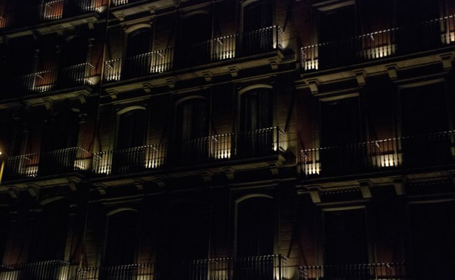 A black light flicked behind a balcony,