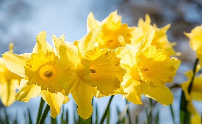 On the bus she’s pressed next to a man with the same grey hair as her father, and he’s reading the news while the rain falls outside the windows on the new blossoms, and she thinks how glad she is of the fact of spring because it reminds her of when she was four, when they still lived in York and she saw the daffodils stretching all the way to the city wall, the wall that looked like a castle wall, the wild gold daffodils so thick, shouting the joy of her childhood from their frilled trumpets, before she emigrated and became this tight person on the bus, with no ambition despite the money her father spent on her education – all that money, where’s your ambition – and she turns the word ambition over in her mind and can’t connect it with herself, she just has to stay on this bus until she gets to the shop because she didn’t go to university which her father says she will regret – another word she has no use for – though she does wonder what she would do if she didn’t have to work in the shop and all she can think of is the daffodil bulbs she’d plant, digging holes to the horizon, the shorn earth cool enough to host thousands of bulbs that will hatch into a brimming gold forest such as no-one, certainly not the passenger beside her, has dreamt of, though he no doubt houses daffodil lore from childhood, songs like daffy down dilly or the opening line from Wordsworth’s poem, and maybe he likes daffodils but there is no way he could love them as she does, this grey man with his head bent, studying the news as though it could contain thoughts as interesting as those streaming right now through her head, with commas breaking the thoughts as thick as the daffodils by the lake the poet passed on the way to Keswick, nor would he have considered the force of sunlight pressed into petal flesh, the pressure needed to make those rich ochres and yellows, and the straight upright quality, the sturdiness, the vivid strengthening joy the soul can eat from, though she is making assumptions and doesn’t know the first thing about him and never will, and she smiles to herself, wondering what he would make of her fantasy that she is waiting for her lover on the city wall and she sees him returning from war in the distance – no, she revises this, recasting herself as the male soldier returning from battle, war-torn, weary, in rags of filth, the smell of men’s blood in his hair, clogs heavy on his feet, sword crusted and hanging from his side, heart leaping at the clear yellow daffodils sweeping up to the city wall, and life seems worth living despite the lives he’s taken, and he shears off a few yellow heads not from spite but to enjoy the resistless gentleness of vegetation against the blade rather than gristle and bone and the burst and drip and rip of death, and all that matters is the integrity of this purest of yellows, and the subterranean mother hatching it out, and knowing the same procreative power waits in his lover on the city wall, he’ll husband her, and she looks around the bus, content that ambition would not teach her these inward valleys of knowing, and if asked what she was thinking, there wouldn’t be a single person on the bus who could guess.