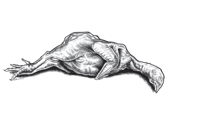 Published in Overland Issue 218 Autumn 2015 · Uncategorized Not that face Leah De Forest I nudge my thumb down the cervical vertebrae until I feel the cut. Then I push in, grab, and twist. The break is a dull knuckle crack. I slice the skin through the cutter and chuck the neck in one direction, the chicken in another. Repeat. Repeat. Repeat. George comes by, humming and frowning under his blue hygiene hat. ‘Jesus,’ he says, queuing up another carcass-laden trolley behind the one I’m working on. ‘They’re piling up.’ I make my lips thin, nod – just once, like I’ve learnt to – and scan for Janina, who’s left me with this mountain of bleach-stenched poultry. George follows my gaze. ‘Oh, you got her today,’ he says. ‘Good luck.’ The place is a fanfare of chickens. They hang from the ceiling, waving their pale plucked wings at the rows of meshy hats below. They stink their meaty too-clean smell; ooze the odd bit of errant giblet; chug their way through the marinading machine; flap their empty neck skin as I toss them into the trolley to my left. I’m not complaining. I’ve earned this job. I need it. They’ve given me tags here, too. Just temporary plastic ones. I hooked them inside my locker when I put on the white overalls. I’m to bring the tags with me for each shift and show them to the security guy at the boom gate. Janina shuffles back from the other side of the factory, pale and cheekless. I think she’s gotten thinner since last week; since yesterday, even. But I take care not to look too closely. Her blonde hair stalks me. Her young eyes reproach me. And her perfume is too sweet. So I grunt when she stands at the trolley beside me, takes up a bird and jabs her thumb into its neck. We’ve got a stack to get through today, and more flailing along the ceiling, waiting for the de-necking before they go for the leg-tucking and the marinade. Two weeks on the job has taught me that while the factory’s moving, there’s no time for thinking, for fixing, for finding one’s place in the world. And I’m glad. I need a distraction. At smoko time, I squeeze past the table of polystyrene cups and spilt Blend 43. I go back to my locker, peel off the overalls, pluck out the tags and head outside. It amuses me how flimsy they are: fat soft plastic pockets and my face dot-matrixed across cardboard. I remember the sheen of the blue photo ID I got when I started at the hospital. Those tags were cause for celebration – oh my god, I made it – and I loved the way they clicked me through doors. Wearing those tags, I learnt to see a boy with a smashed femur over here, and think ahead to my glass of shiraz over there, and know the two weren’t connected. To calmly tell a hairdresser that I couldn’t be sure, but I thought the vertigo and tingling might be caused by a clot in her brain – yes, what you’d call a stroke – and I’d need to run some tests. To pad soothingly out the door. But those tags displayed my old face. This new one is a thin smudge. It knows better. Knows to smile anonymously at the guard, nod ‘smoko time, yes’, wave with the back of my hand when he says, ‘so it’s just ten minutes, yeah?’, and wander with my head down along the nature strip, staying empty. When I go back through the gates, Janina is leaning on a wall, her chin tipped towards the sun, an almost-smile on her mouth. She runs pink fingernails down her skinny jeans and doesn’t open her eyes when one of the supervisors calls her. ‘Mmmmmm,’ she says. ‘Yeah?’ The supervisor shakes his salt-and-pepper head and waves everyone inside. George comes out from behind the giant cactus, stubs out a cigarette and smiles. I try to smile back, but my mouth won’t do it. I go back to the chickens. Another two trolleys have queued up since we went on break. Janina doesn’t even look past the first bird: just picks it up, thumb, twist, cut. Slop. We ignore each other, listen to everyone around us: the little Italian ladies at the stuffing station, chatting brightly, and the group of guys lugging crates into the cool room, shouting jokes and punting chickens when the boss isn’t looking. But even without glancing at her, I can see the signs – the unsteady gait, pain-induced pauses, the way the tip of the ulna makes a tent of her flesh. Still, I don’t see why I should mention it. I’m not that face anymore. It’s not so bad, this job, once you get into the rhythm of it. The carcasses slide down the pile. I am a clearing machine; I feel the goosebumps on the chicken flesh and soft cold meat through my gloves. Janina and I are getting through it; we’re going to make it to lunch. I’ve got my Mum-packed sandwiches, and it’s sunny out. Tonight there’ll be TV and toast. The clock is inching towards twelve when Janina stops. The back of her neck has that pastry look. She sways and falls forward into her trolley, sending chickens avalanching onto the concrete floor. She catches her chin on the slicer on the way down, and the blood slimes across the chicken pile. It’s only a small cut, I should kneel down, clear the area, check her breathing. But I can’t. I can’t. That other face – my old face – was in love with flesh and bone. Just the mastery of it: standing back when a big trauma came in, and ticking off the list. Airway? Breathing? Circulation? Disability, exposure? What have I missed? The movement, the uncertain rush of it, the smell of alcohol swabs and blood. The faint snap of a scalpel on flesh, the scuddery resistance of a tube snaking into the lungs. Even the paperwork: certification of death, the organ donor process. Something to be done. The day it happened, I was still wearing my tags. It had been a long day, an early start, and I was on my way to dinner. It was at that great new place round the back of Smith Street that Stephanie had been raving about. ‘The paella,’ she’d been saying. ‘It has to be tasted!’ And at the last minute, I reme
