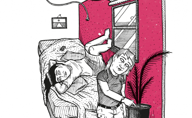 When we pull up outside Ellen’s house, I pay and he leaves. The sky is pale. I use the spare key that’s kept in a pair of old joggers and I open the door and go inside. In the hallway there is sunlight coming through the windows and it lights up dust particles in the air. I take off my shoes and walk up the stairs quietly. I am outside Ellen’s door when I hear groans. I put my ear to the door and hear the sound of the bed creaking back and forth.