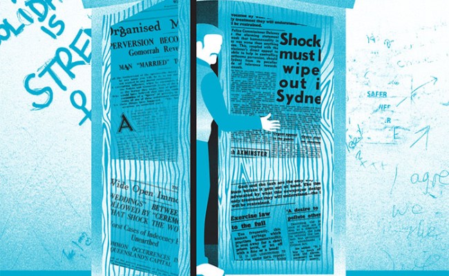 To fully appreciate the radicalism of Gay Liberation one needs to understand the social and legal context in which it emerged. To identify as gay or lesbian in postwar Australia was to live a life of secrecy and shame. The 1950s and 60s saw concerted efforts to reconsolidate the nuclear family and traditional gender norms – both of which had been disrupted by the war – prompting a crackdown on homosexuality. Gay men, in particular, became targets for police harassment, state persecution and media hysteria, feeding a sense of insecurity, fear, loneliness and alienation. Colin Delaney, then NSW police superintendent, called homosexuality ‘the greatest menace facing Australia’, prompting the NSW government to further criminalise homosexual sex between men. There was a sharp increase in the number of people charged, as police escalated the use of entrapment techniques at gay beats. Names of arrestees were often printed in the paper, meaning those caught often lost their jobs, and sometimes their families.