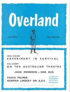 Published in Overland Issue 17 Autumn 1960 · Poetry There is Anguish in Knowing Dorothy Hewett There is anguish in knowing that I cannot reach you.This kiss can break no barrier of bone,I know no ease of language that might teach you In that last place where we must stand alone. Only in bitter struggle do we grow wise, Knowing no quarter, and no compromise.There is anguish in knowing that I cannot break you.Beyond this wall of flesh you stand intact.Ah! with what fingernails of hate I’ll rake you, Till love has ground its teeth on sour fact.Eyes, mouth and hands made blind, compassionate, Beyond the sting of love, the burr of hate.There is anguish in knowing we can never meet In this small room where we are most alone,And yet the grass against the root grows sweet, And yet the flesh tastes sweeter at the bone.Four walls of love and sunlight on the floor, And the Judas kiss that closes the last door. Dorothy Hewett More by Dorothy Hewett › Overland is a not-for-profit magazine with a proud history of supporting writers, and publishing ideas and voices often excluded from other places. If you like this piece, or support Overland’s work in general, please subscribe or donate. Related articles & Essays 5 November 2025 · Poetry Force posture agreement Miroslav Sandev The men of Darwin have all taken their rottweilers / out for a walk at the same time. / For our protection. Like Pine Gap: / all those big white eyes that scan / the darkening horizon. / The eyes stay woke, so that we may sleep. / Or so they say. 1 22 August 202522 August 2025 · Poetry starmight K.A Ren Wyld Ending genocide and apartheid is the story. Palestinian liberation is the story. / Aboriginal rights is the story. Truth, justice, treaties and land back is the story. / Global Indigenous peoples’ solidarity and joy is the story. Kinship is the story.
